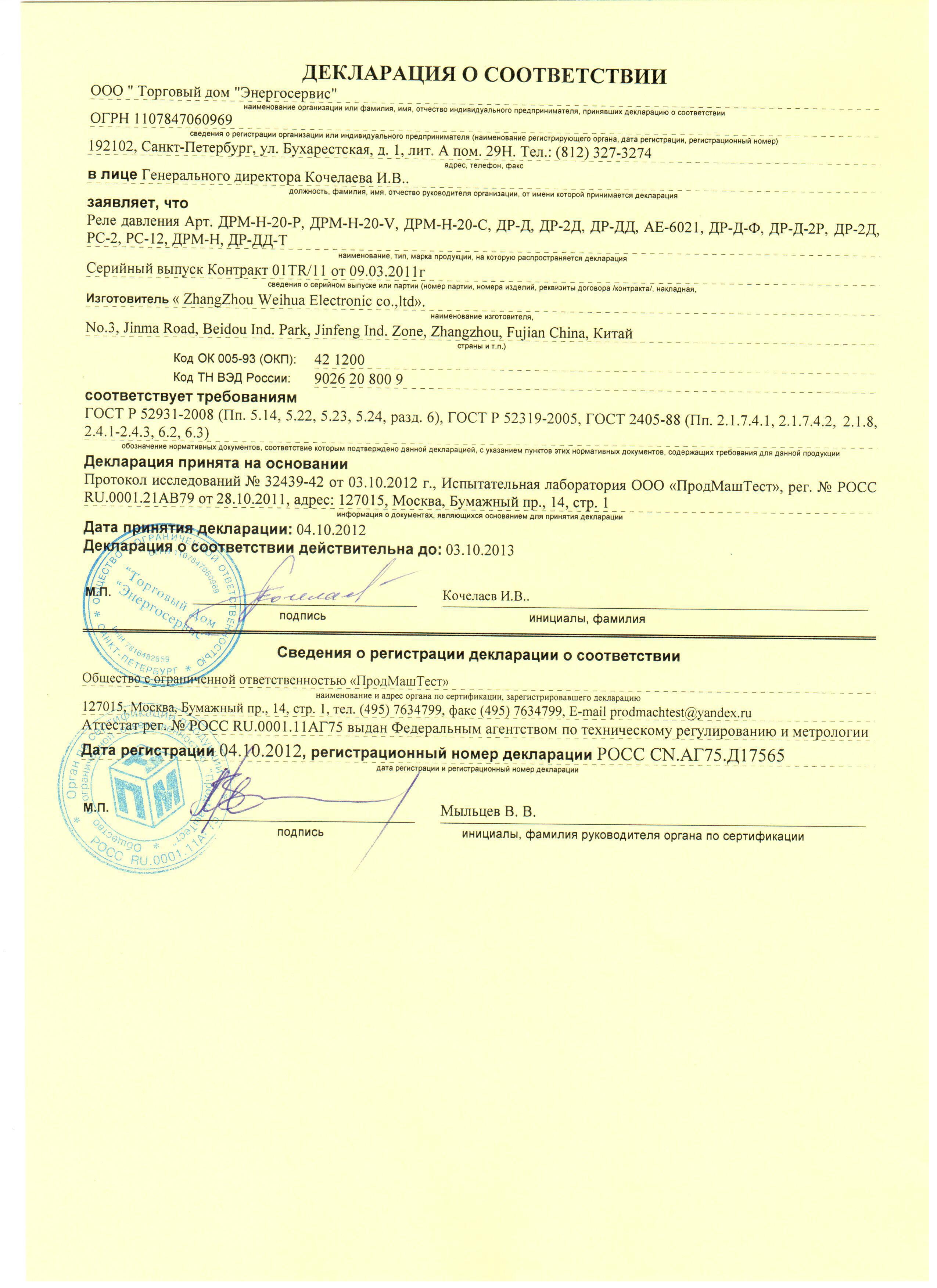 Датчики-реле давления ДР-Д могут применяться для регулирования давления жидких и газообразных сред, неагрессивных по отношению к материалам внутренней системы реле давления. Для коммутации внешних электрических цепей на выходе реле давления имеется переключающий контакт.