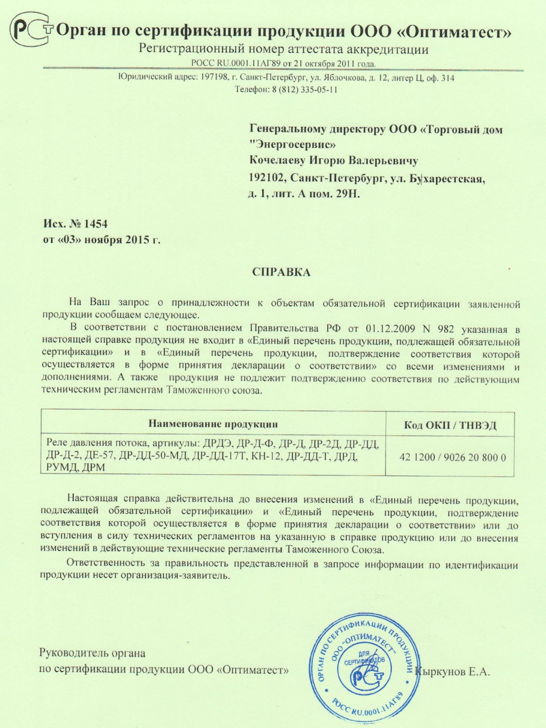 Реле давления ДР-Д-Ф, Вкл.=1,6МПа/выкл.=1,2МПа,
