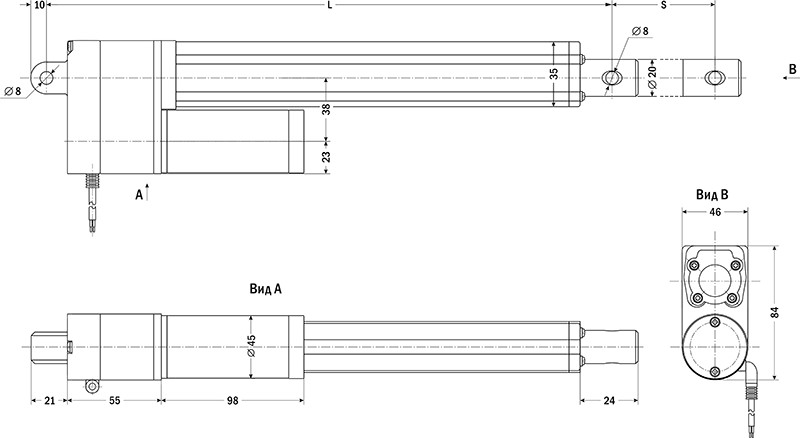 Длина хода штока (S) |