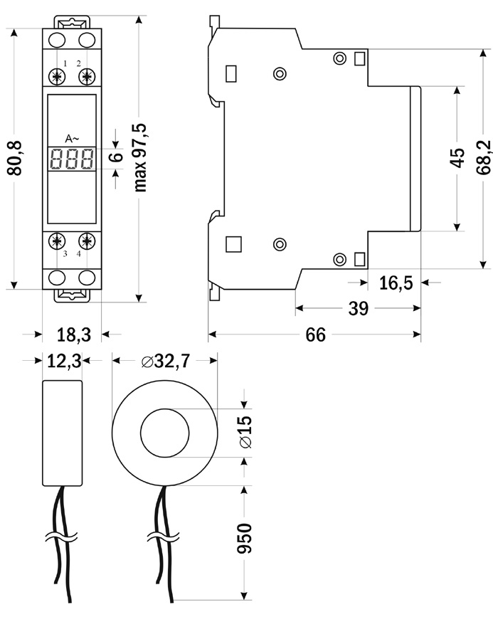 Амперметр однофазный на DIN-рейку Omix D1-A1-1