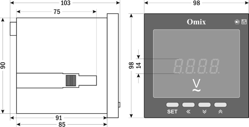 Вольтметр однофазный щитовой Omix V1-1-I420-RS485-N2 предназначен для измерения и индикации напряжения в однофазных сетях переменного тока, а также для преобразования измеренных значений в аналоговый сигнал 0(4)...20 мА и передачи измеренных значений по протоколу Modbus RTU