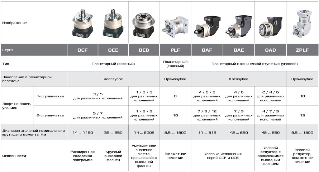 • Планетарные редукторы серии OCF