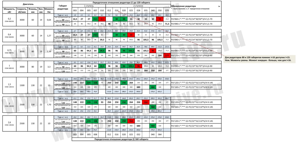 Таблицы выбора планетарных редукторов
