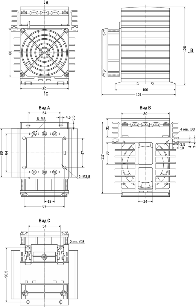 - Питание вентилятора от сети ~220 В