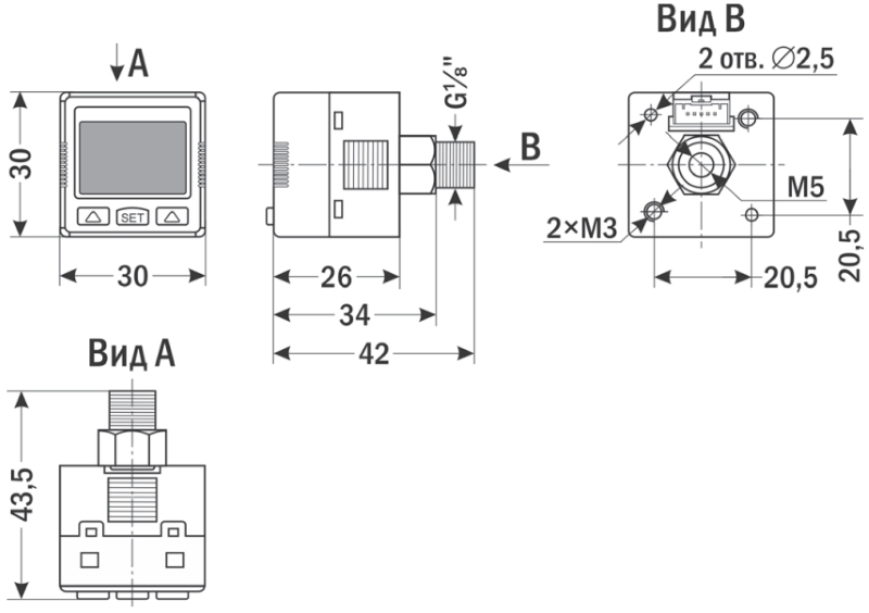 Габаритные размеры 30×30×43,5 мм