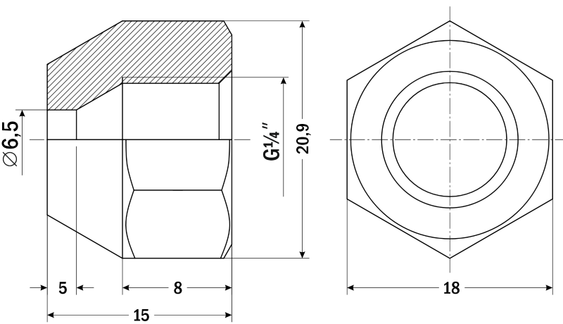 Переходник с G¼" под расклепку к ДР-Д, ДР-2Д, ДР-ДД. Используется для присоединения развальцованной капиллярной трубки диаметром 6,5 мм к штуцеру реле давления.