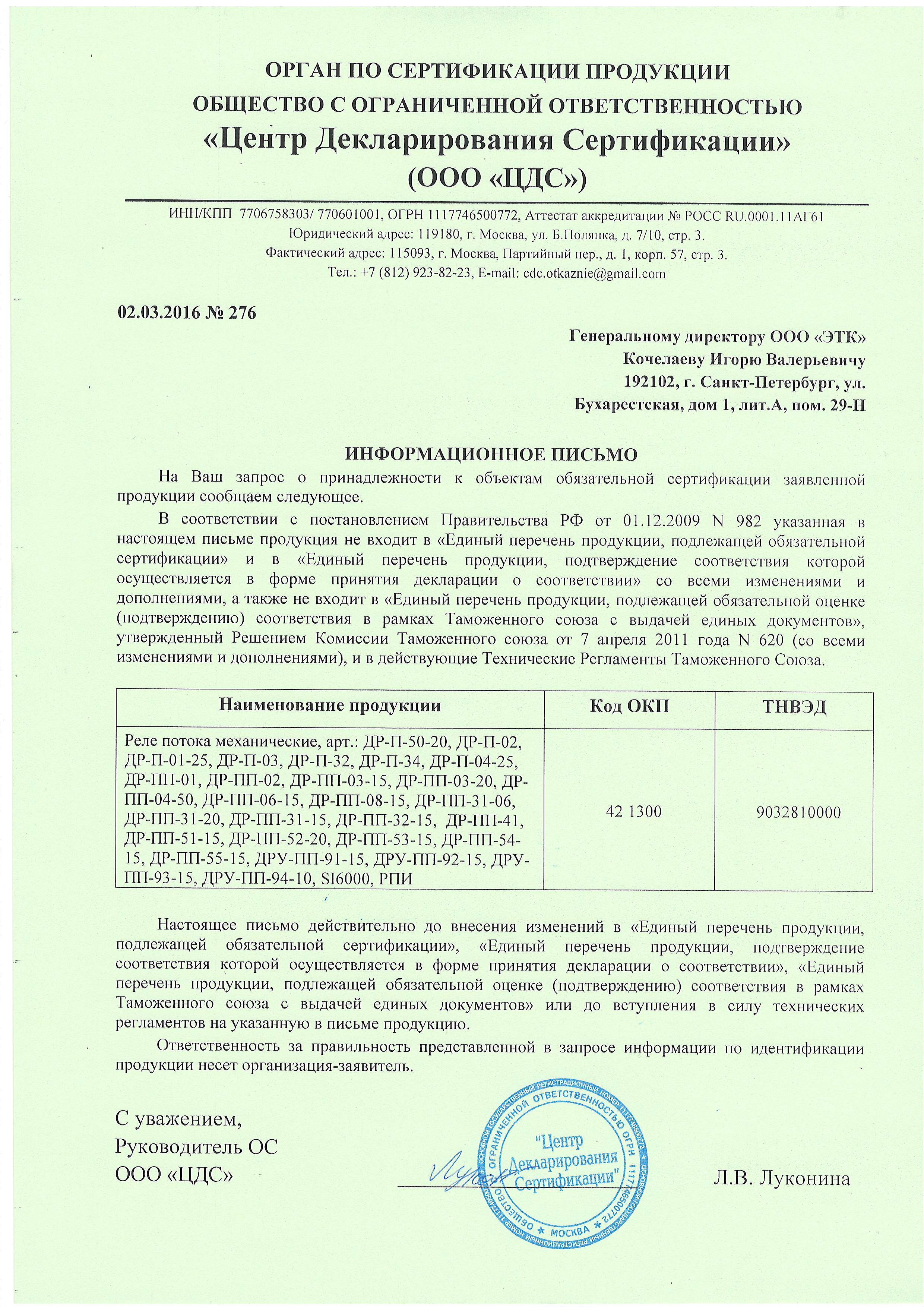 Датчик-реле потока лепестковый ДР-ПП-54-15