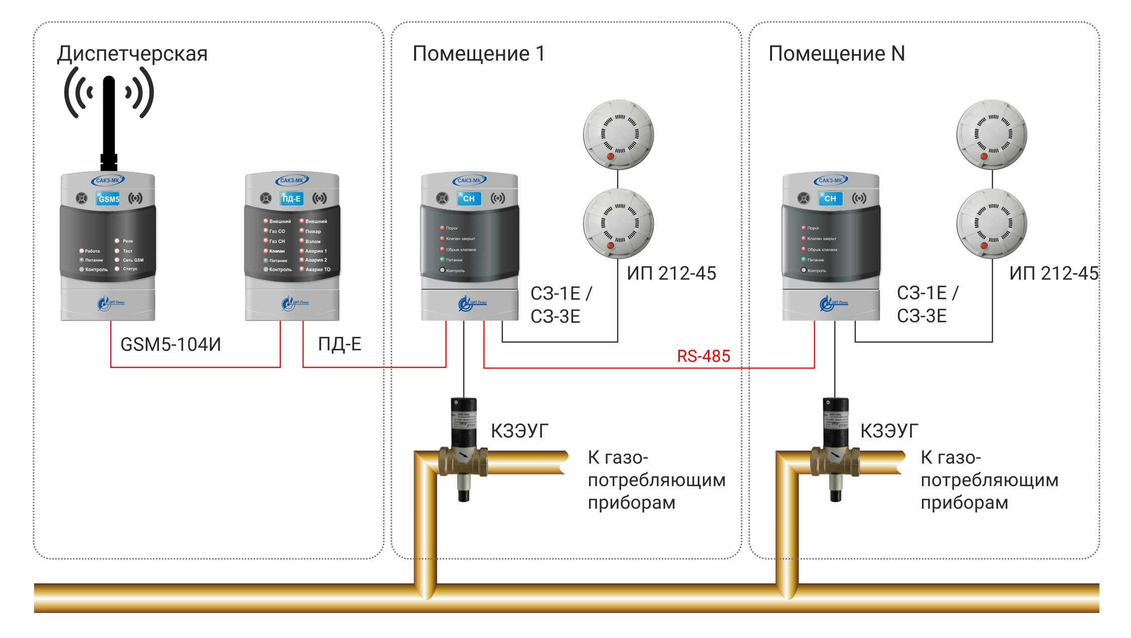 •  АДРЕСНЫЙ ПРОТОКОЛ RS-485.Все устройства САКЗ-МК®-1Е, -ЕВ, -ЕР взаимодействуют по адресному протоколу RS-485, таким образом при срабатывании какого-либо устройства, автоматически становится известно его местоположение (адрес).