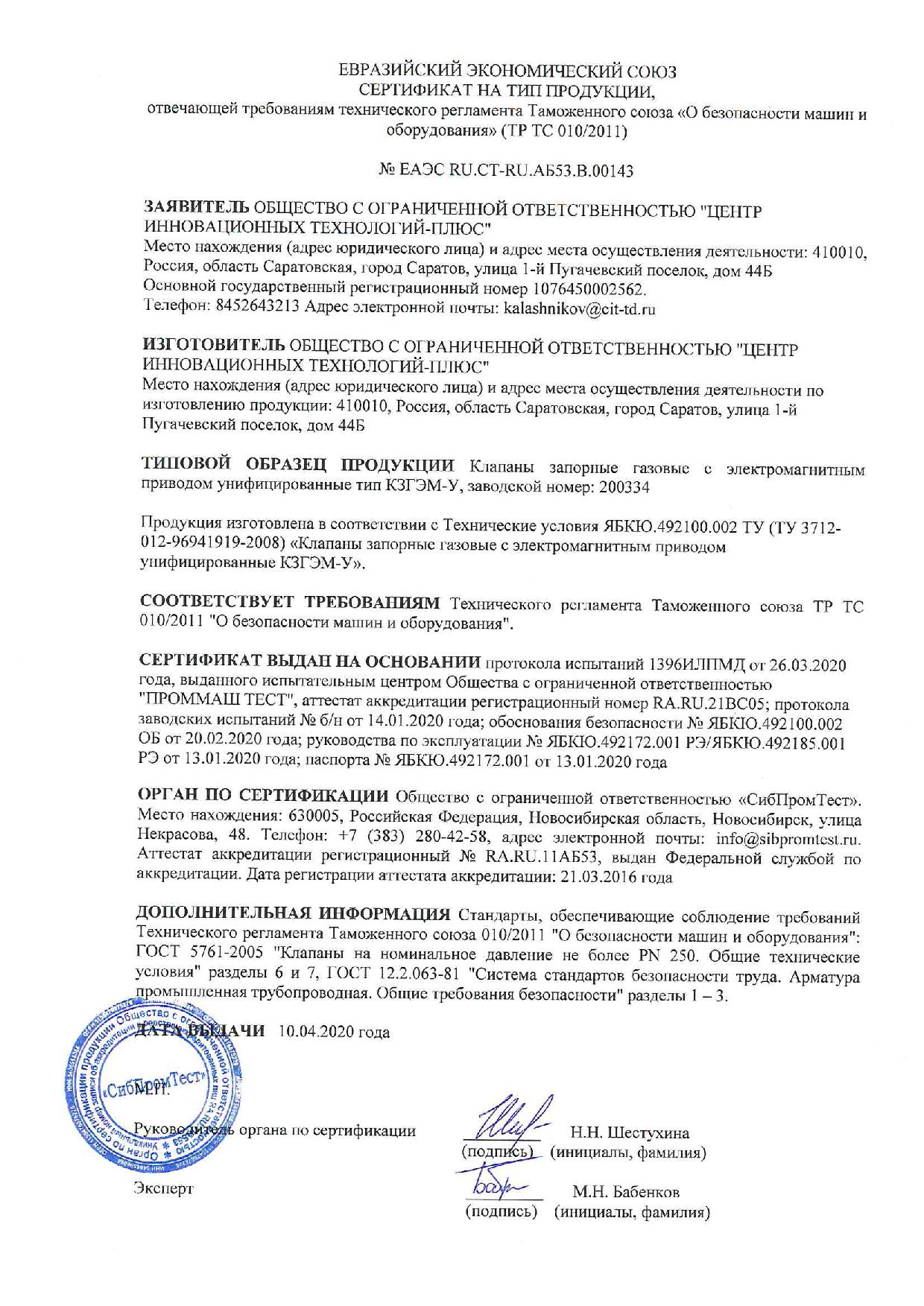 КЗЭУГ-20, Клапан запорный с электромагнитным управлением газовый