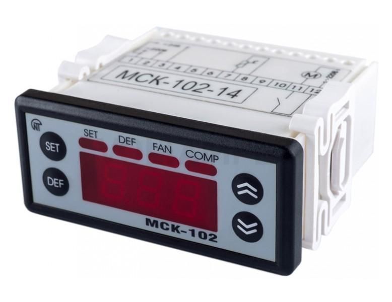 МСК-102-14 позволяет контролировать температуру морозильной камеры и проводить автоматическую оттайку отключением компрессора на заданное пользователем время.