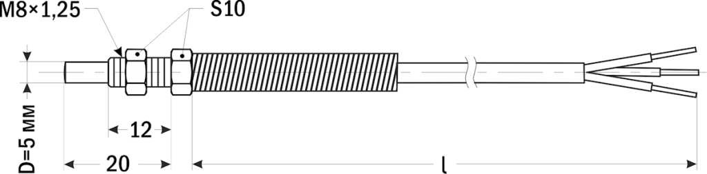 - Штуцер со стандартной метрической резьбой М8×1,25 позволяет легко монтировать термосопротивление в стандартное резьбовое отверстие в объекте измерения температуры