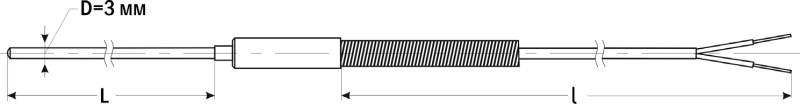 Термопара ТП-А-4011-3 изготавливается на основе гибкого кабеля в стальной оболочке (или оболочке Inconel 600) с минеральной изоляцией.