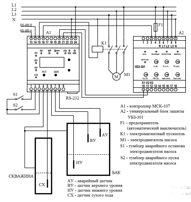 Подключение блока защиты УБЗ-301