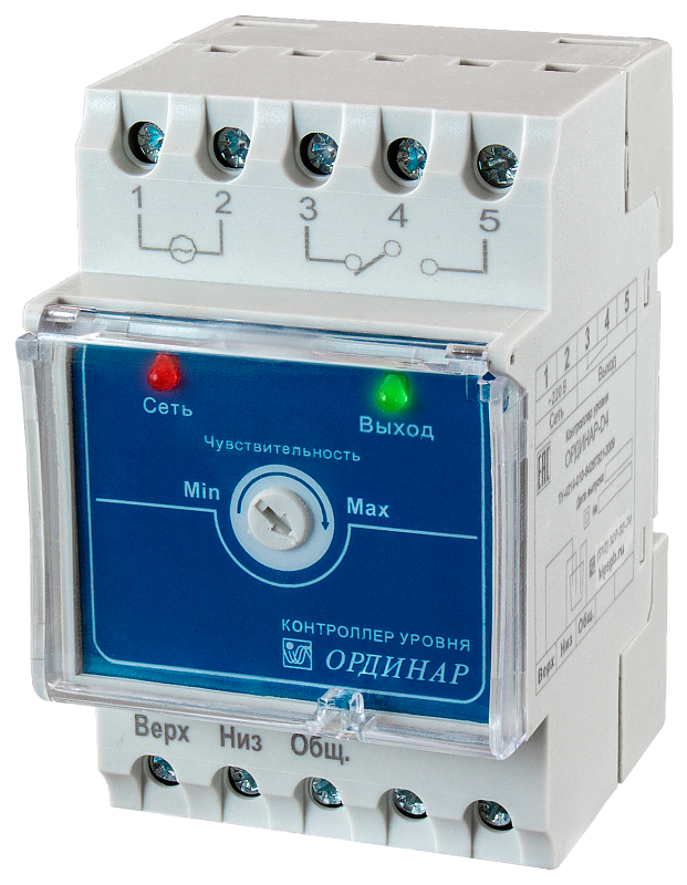 ОРДИНАР-Д4 предназначен для контроля уровня проводящих жидкостей (воды, химических растворов и т. п.) в колодцах, коллекторах и других емкостях. Может применяться для автоматического осушения резервуара, бака, приямка и т. д.