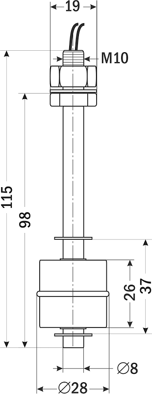 Поплавковый датчик уровня ПДУ-Н101, 100, Универсальный
