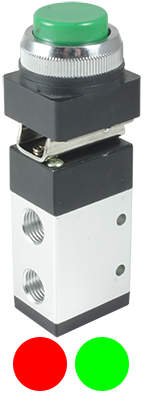 Прибор для распределения воздушных потоков, управления исполнительными устройствами пневмосистем • Тип: 3/2 (3-линейная, 2-позиционная), нормально закрытая • Присоединение: G1/4" • Рабочее давление: 0…0,8 МПа • Рабочая температура: 0…60°C • Цвет: красный или зеленый
