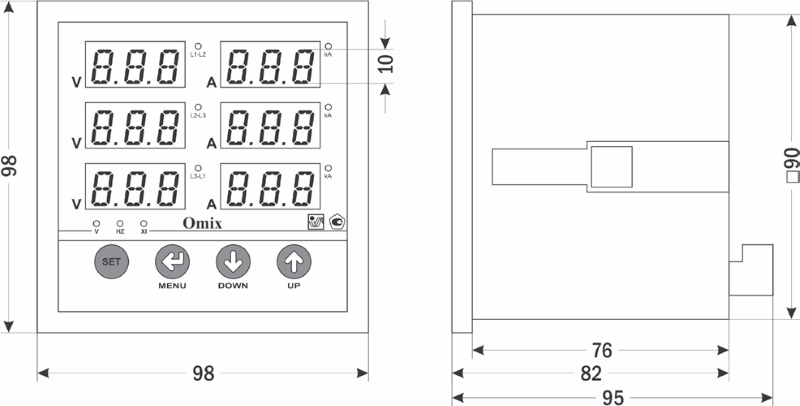 Мультиметр трехфазный щитовой Omix P99-M6-3
