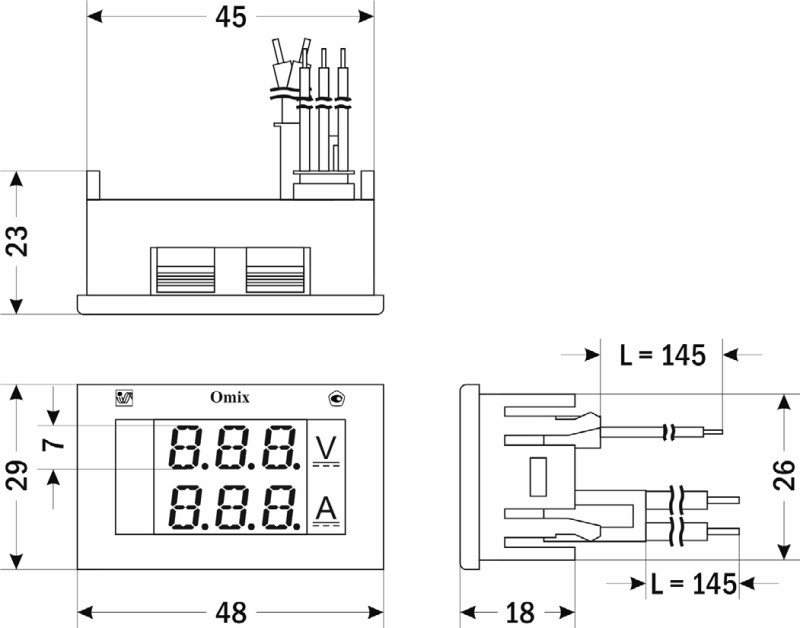 Щитовой цифровой индикатор тока и напряжения (вольтамперметр) Omix PQ42-DAV2 предназначен для измерения и индикации напряжения и силы тока в сетях постоянного тока