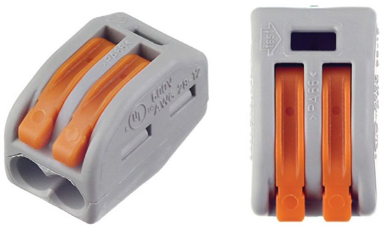 Клемма соединительная с рычажным зажимом для быстрого и безопасного соединения проводов сечением 0,2...4 мм^2 • Количество контактов: 2 • Сечение провода: 0,2...4 мм^2 • Номинальное напряжение: 450 В • Номинальный ток: 32 А • Цвет: серо-оранжевый • Способ подключения проводов: рычажный зажим