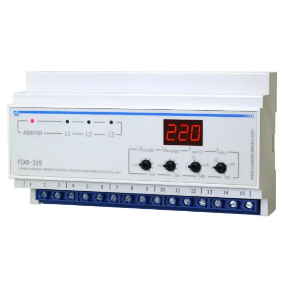 Автоматический переключатель фаз ПЭФ 319 выбирает фазу, параметры которой находятся в пределах нормы. Благодаря встроенному микроконтроллеру ПЭФ 319 анализирует состояние энергосети и отображает полученные сведения на индикаторе. При этом, потребитель может даже не заметить, что на линии произошел обрыв.
