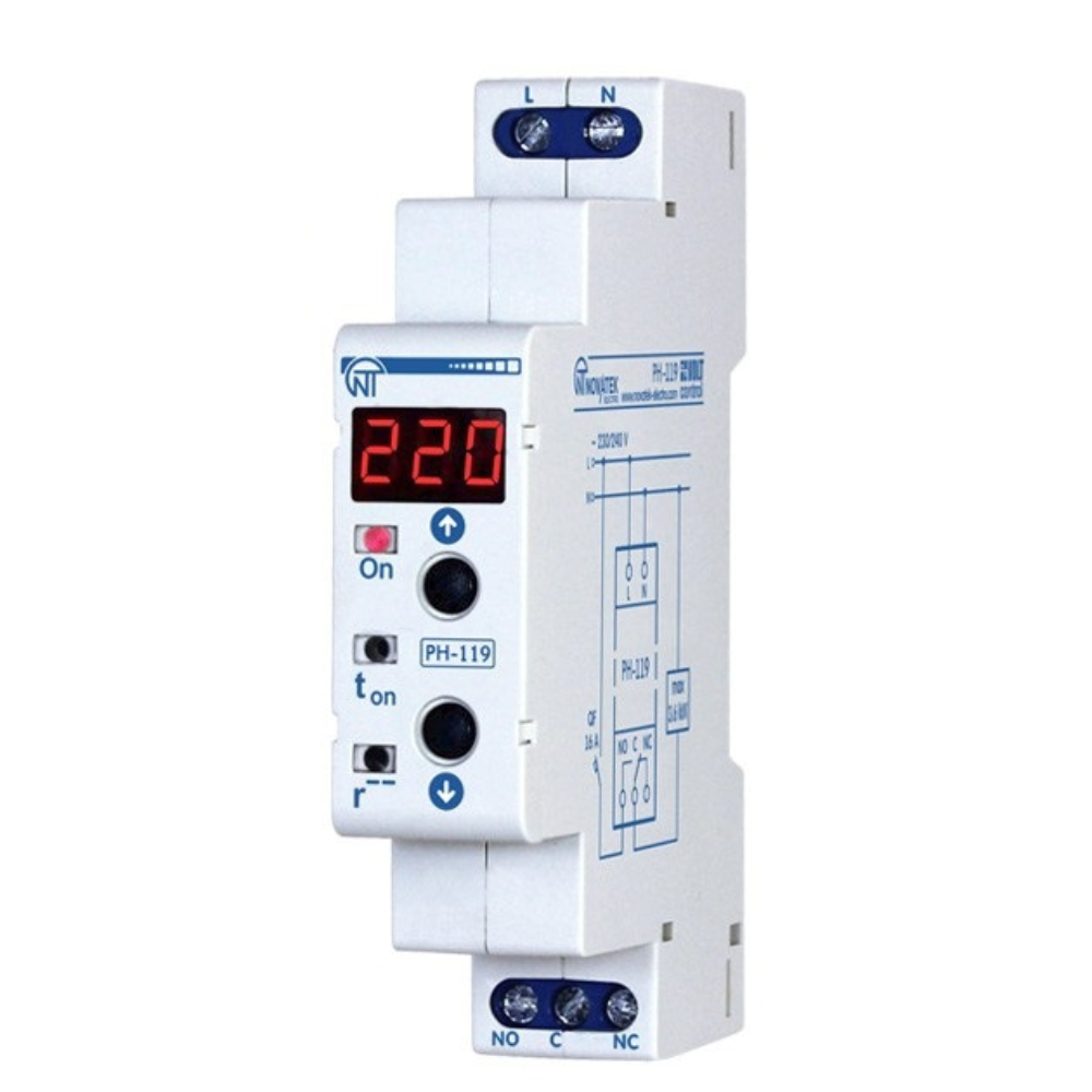 Реле напряжения РН-119 предназначено для отключения бытовой и промышленной однофазной нагрузки любой мощности при недопустимых колебаниях напряжения в сети с последующим автоматическим включением после восстановления параметров сети.
