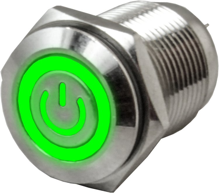 Антивандальная металлическая кнопка с подсветкой SD16-V-16ZFD предназначена для управления различным оборудованием в условиях неблагоприятной среды, повышенных нагрузок и вероятности умышленного или неумышленного повреждения • Контакты: 1 НО • Коммутационная способность: =2 А, 36 В; ~3 А, 250 В • Диаметр монтажного отверстия: 16 мм • Зеленая подсветка в виде символа ON-OFF • С фиксацией • Материал корпуса: хромированная латунь • Материал нажимной части: нержавеющая сталь • Степень пылевлагозащиты IP65 (со стороны лицевой панели) • Степень защиты от внешних механических воздействий IK06 (со стороны лицевой панели)