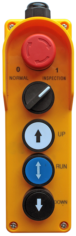 • Назначение элементов управления: кнопка «Stop/Стоп», переключатель режимов, кнопки «Up/Вверх», «Run/Движение», «Down/Вниз»