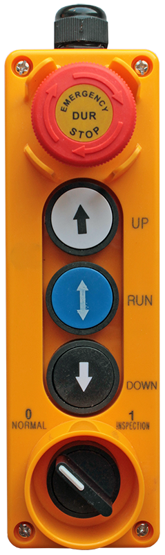 • Назначение элементов управления: кнопка «Stop/Стоп», кнопки «Up/Вверх», «Run/Движение», «Down/Вниз», переключатель режимов