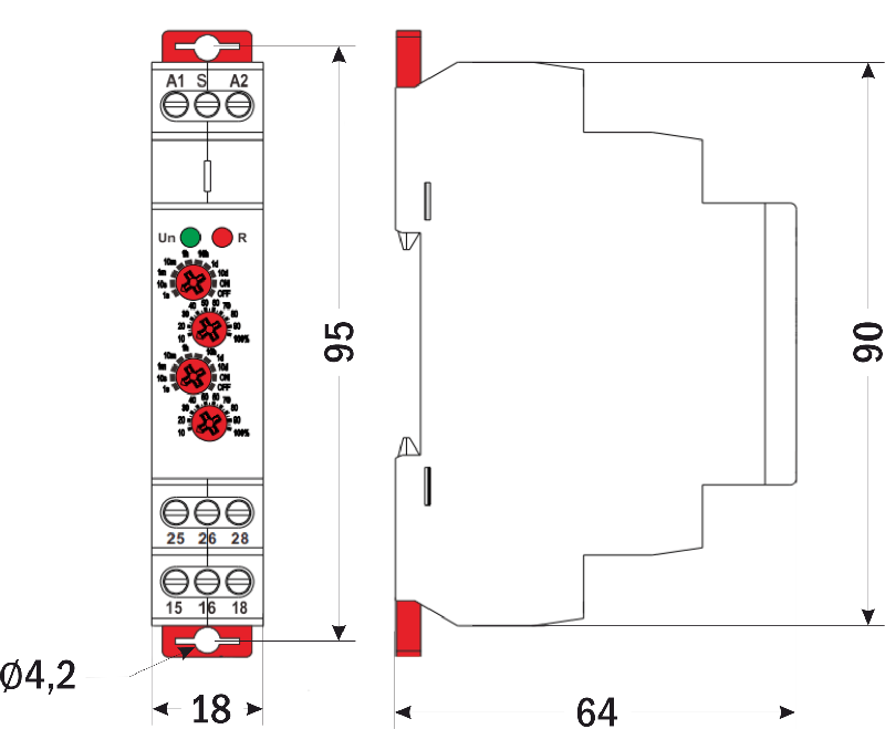• Светодиодные индикаторы питания и состояния реле
