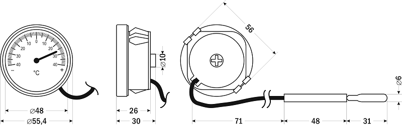 Индикатор температуры капиллярный ART-02 применяется для непрерывного измерения температуры жидкостей и газов в различных установках и системах теплоэнергетического контроля, к примеру, в котельных установках, водонагревателях и т. п.