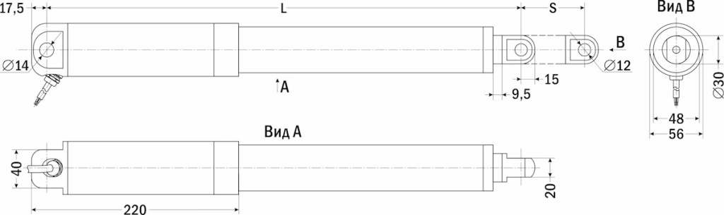 Длина хода штока (S) + 320 мм (S=400 мм)