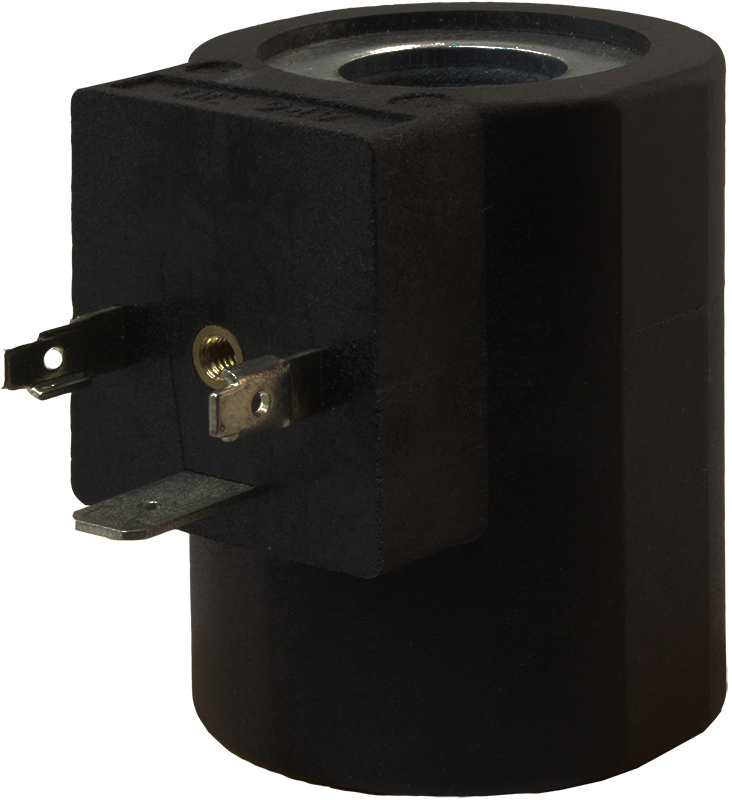 Катушка для управления соленоидными клапанами • Размер посадочного отверстия: ∅16,5×H50 мм • Потребляемая мощность: 27 Вт • Питание: =24 В • Класс нагревостойкости и изоляции катушки: +180°C (класс H) • Степень пылевлагозащиты: IP54 • Присоединение: DIN 43650A