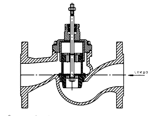 Направление подачи рабочей среды одностороннее – по стрелке- указателю на корпусе. Усилие, развиваемое ЭИМ, передается на плунжер, который перемещается вверх и вниз, изменяя площадь проходного сечения в затворе и регулируя расход рабочий среды. Это усилие существенно уменьшается благодаря разгрузке плунжера.