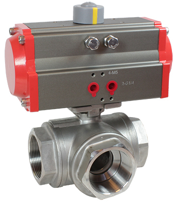 Кран шаровой трехходовой с пневмоприводом для управления потоком рабочей среды в трубопроводе • Тип: переключающий (L-тип) • Рабочая среда: пар, вода, горячая вода, воздух, инертные газы, природный газ, масла, азотная кислота, уксус • Температура рабочей среды: −20...150°С • Рабочее давление: 0,0…6,9 МПа (0,0…1,6 МПа — для пара) • Диаметр условного прохода: 8...100 мм • Материал корпуса: нержавеющая сталь • Материал уплотнения: PTFE • Присоединение: резьбовое G1/4"...4" • Модель пневмопривода: ППР1, ППР2 -Стоимость: от 5101 до 73884 руб.