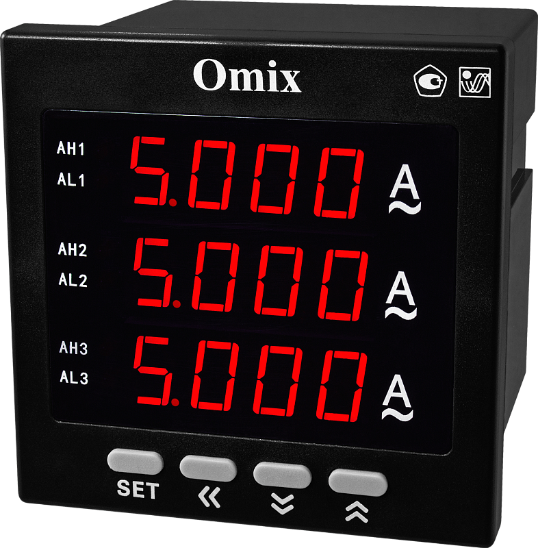Амперметр трехфазный щитовой с релейным выходом Omix P99-A3-3-K предназначен для измерения и индикации силы тока в трехфазных сетях переменного тока, а также для сигнализации о выходе измеренных значений за установленные пределы