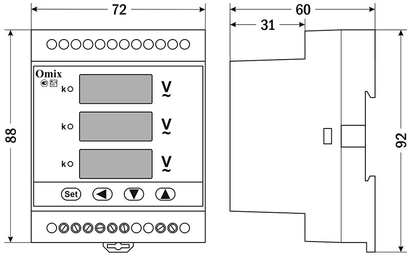 Вольтметр трехфазный на DIN-рейку Omix D4-V3-3 предназначен для измерения и индикации напряжения в трехфазных сетях переменного тока