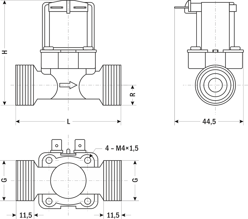 Клапан соленоидный нормально закрытый непрямого действия с диафрагмой AR-2DM51 предназначен для управления потоком рабочей среды в трубопроводе
