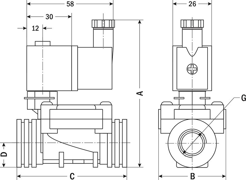 Клапан соленоидный нормально закрытый непрямого действия с диафрагмой AR-2D51 предназначен для управления потоком рабочей среды в трубопроводе