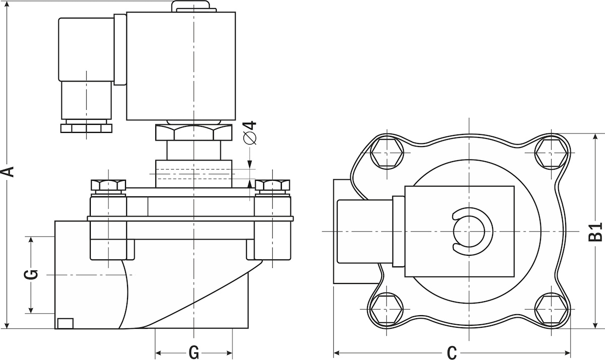 Нормально закрытый соленоидный клапан – это магнитный клапан, в котором закрытое положение сохраняется, если управляющее напряжение на его индукционную катушку не подается. При подаче напряжения на катушку нормально закрытый клапан открывается и пропускает через себя поток рабочей среды. При отключении управляющего напряжения этот клапан автоматически закрывается и перекрывает поток рабочей среды в трубопроводе. При обрыве провода управляющего напряжения клапан будет закрыт.