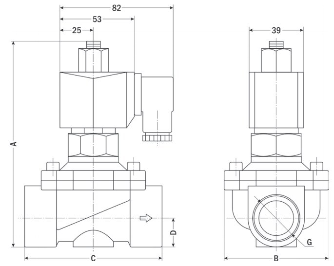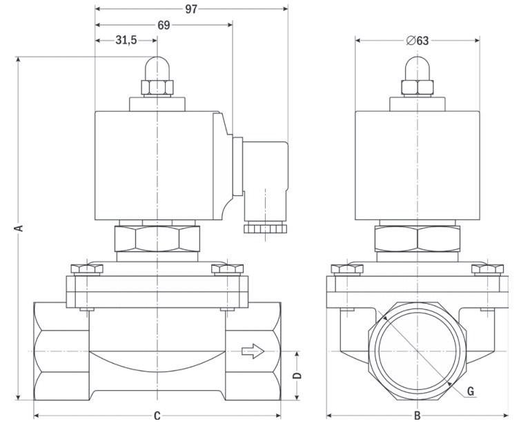 Клапан соленоидный нормально открытый прямого действия с диафрагмой AR-2K12 предназначен для управления потоком рабочей среды в трубопроводе