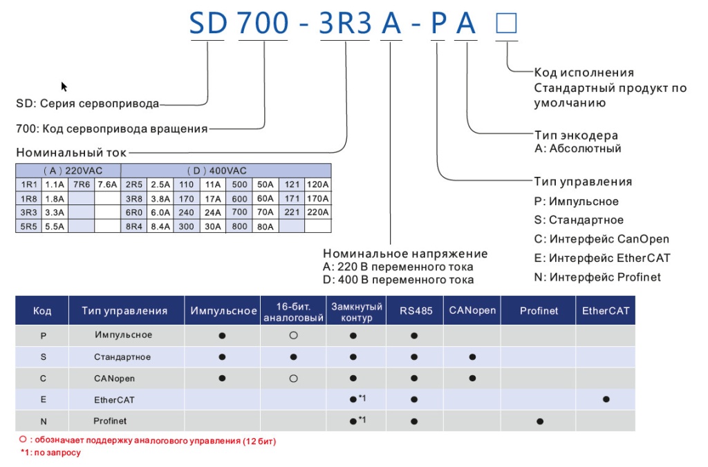Сервоприводы серии SD700 поддерживают коммуникационные интерфейсы RS-485, EtherCAT, CANopen, Profinet.