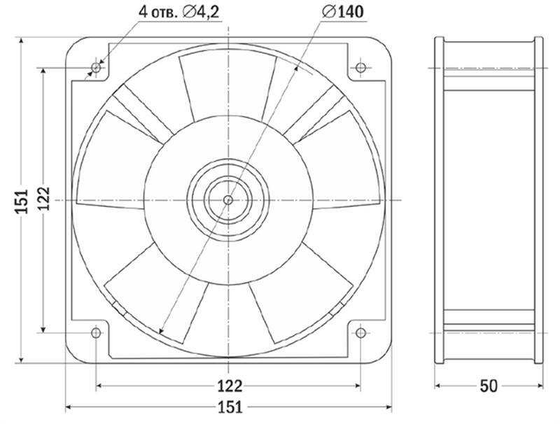 122×122 мм (4 отв. ∅ 4,2 мм) |