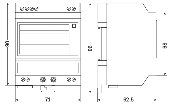 - Регулирование выходного напряжения и максимального тока срабатывания по перегрузке при помощи интегрированных потенциометров