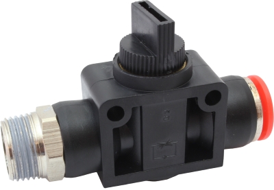 Фитинг пневматический с краном для соединения различных элементов пневматических систем • Тип присоединения: трубка – наружная резьба • Внешний диаметр присоединяемой трубки: 6 мм, 8мм, 10 мм • Присоединительная резьба: K⅛", K1/4", K⅜", K1/2" • Рабочее давление: 0…0,8 МПа • Рабочая температура: 0...60°С -Стоимость: от 348 до 671 руб.