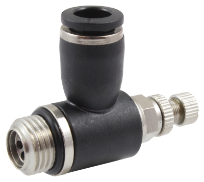 Фитинг пневматический угловой с дросселем с уплотнительным кольцом для соединения различных элементов пневматических систем